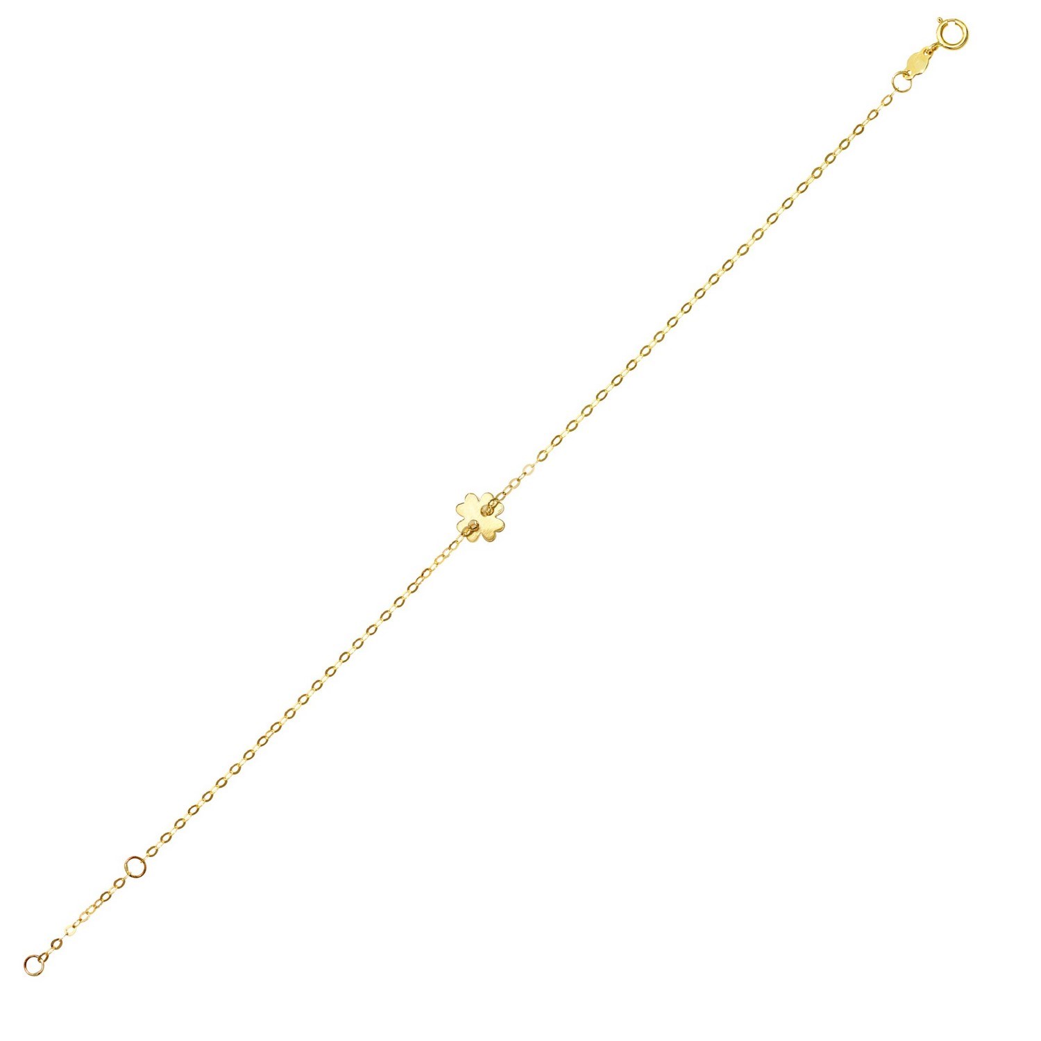 Crafted in radiant 14K yellow gold, this clover bracelet features a polished four-leaf clover charm centered on a delicate gold chain, symbolizing luck and positivity with timeless elegance. Its warm golden shine and minimalist design make it perfect for everyday wear, whether worn solo for a subtle touch of charm or layered with your favorite bracelets for a personalized, stylish stack.