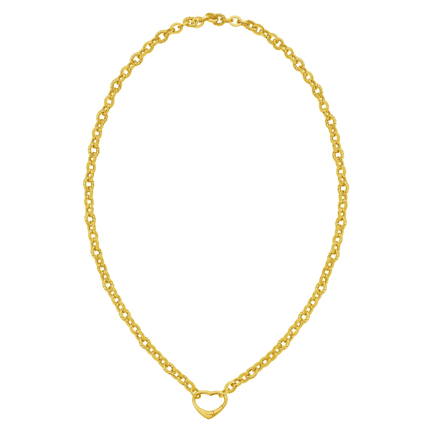 Express your love with this 14K yellow gold heart lock charm necklace. The 18 inches chain features a polished heart-shaped clasp that opens to allow the addition of personal charms, making it a versatile and meaningful accessory. Perfect for gifting or as a cherished piece in your own collection, this necklace combines elegance with personalization.