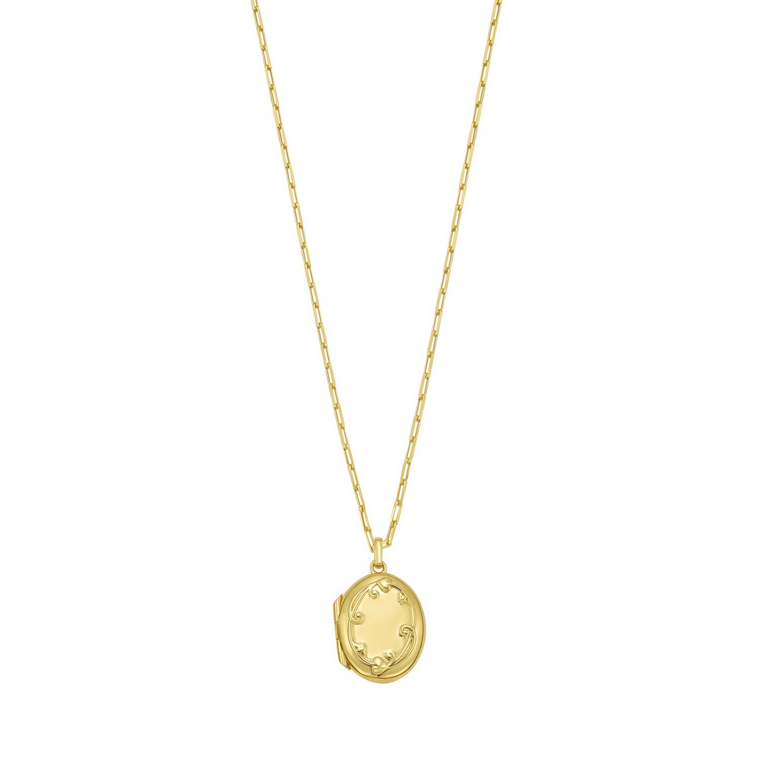 Warm and meaningful, this Sterling Silver Gold Plated Oval Vine Locket Necklace blends timeless sentiment with nature-inspired beauty. The oval locket is adorned with a delicate vine motif that adds soft, organic charm to its polished gold-plated finish. Crafted in sterling silver for lasting quality, it opens to hold a cherished photo or keepsake close to your heart. Perfect for everyday wear or gifting, this piece brings together heartfelt elegance and refined, modern style.