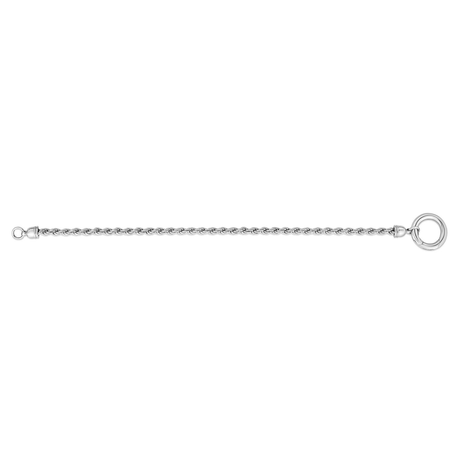 This sterling silver rhodium plated rope chain bracelet (3.40 mm) features a polished fancy push-lock clasp for a secure, stylish finish. Its bright shine and textured rope design make it a modern standout, perfect for everyday wear or layering.