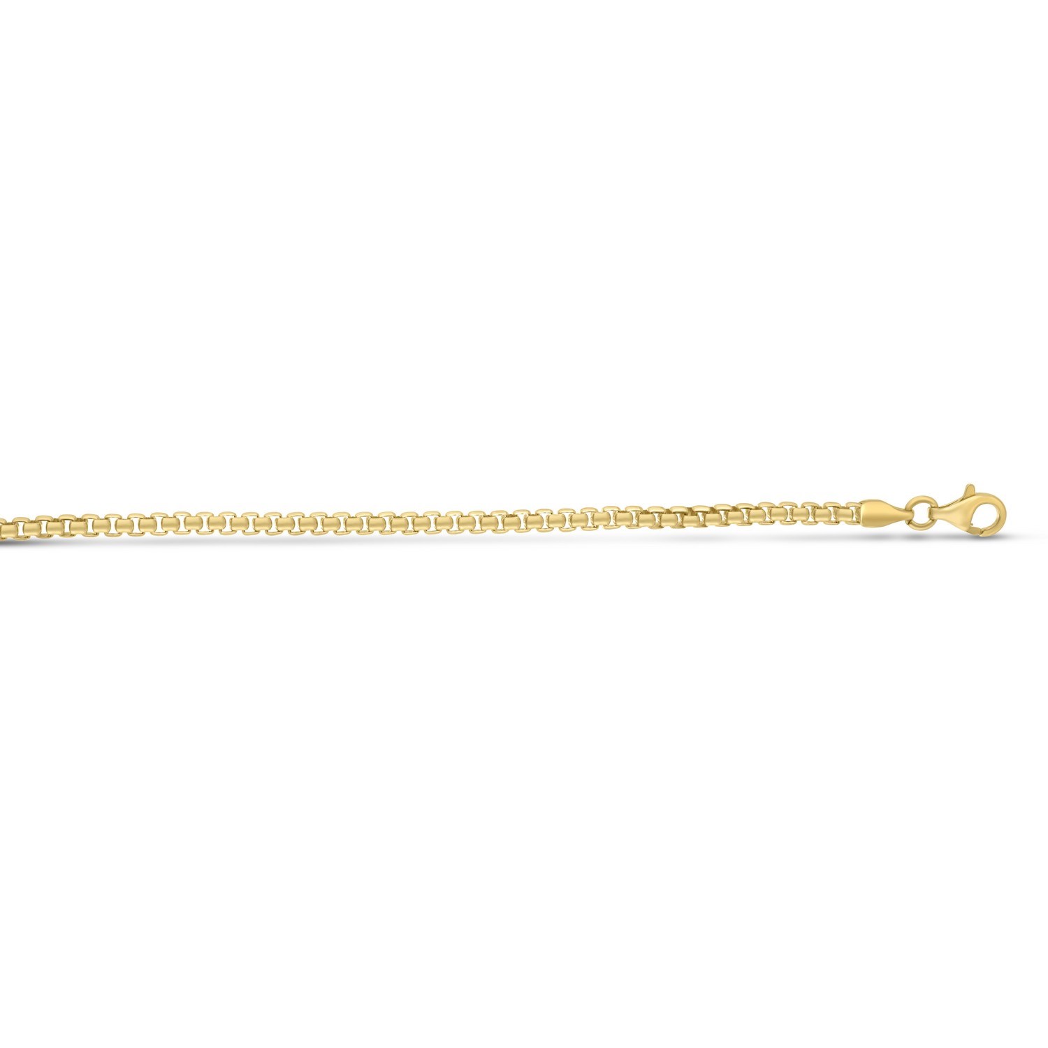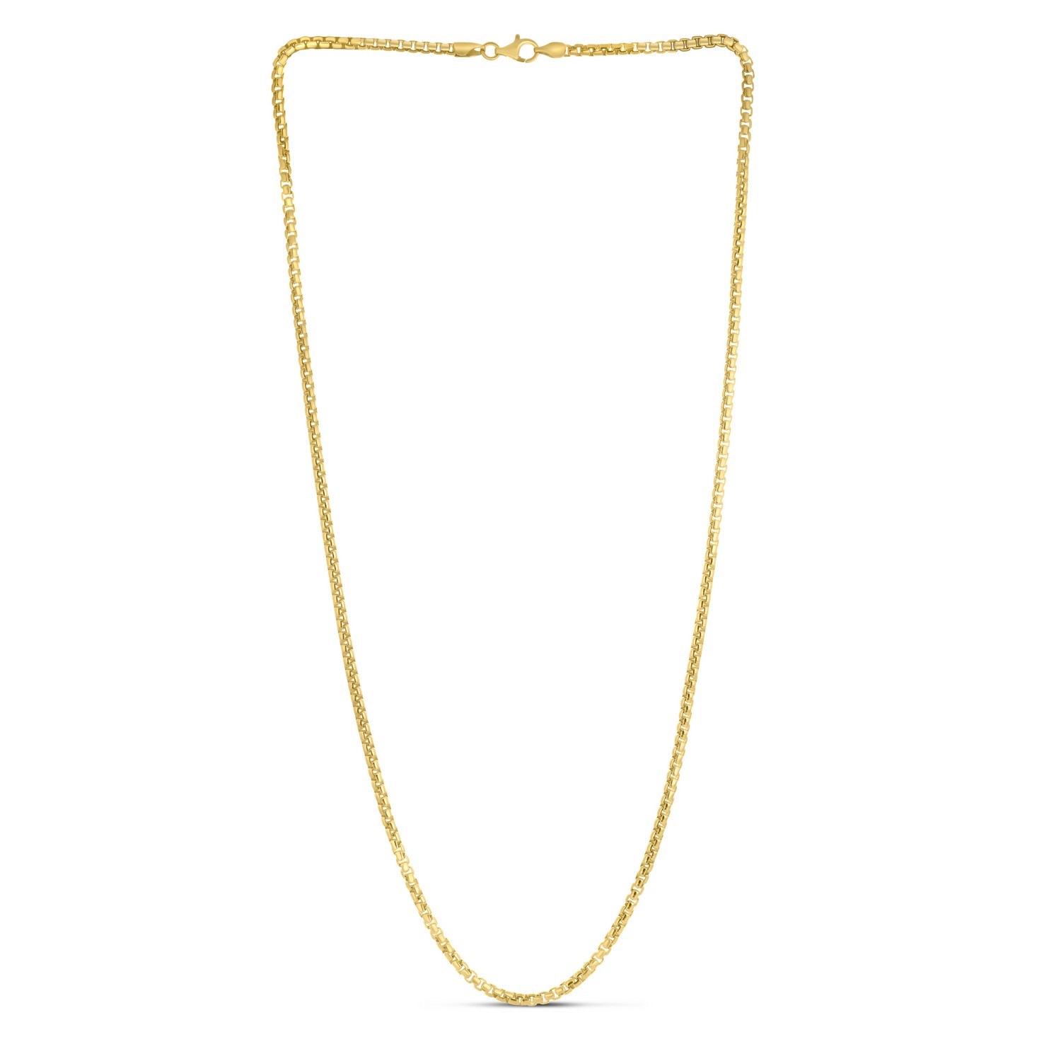 Crafted in sterling silver with a luxurious yellow gold plating, this 2.60 mm round box chain features smoothly rounded links that create a bold yet refined shine, offering exceptional strength and a versatile look perfect for wearing alone or enhancing with a standout pendant.